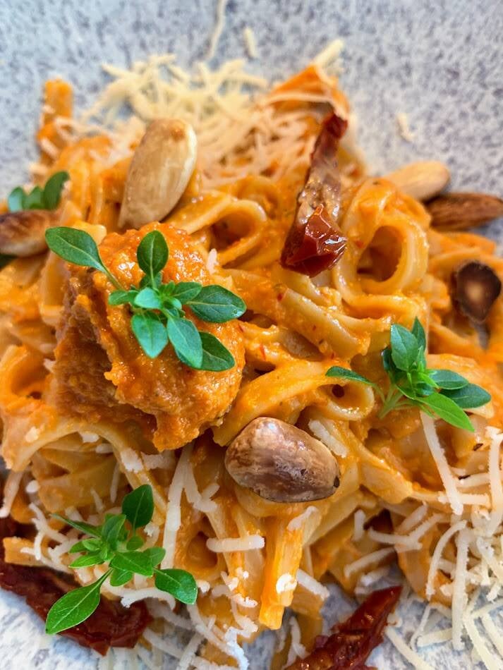 Rode pesto noedels