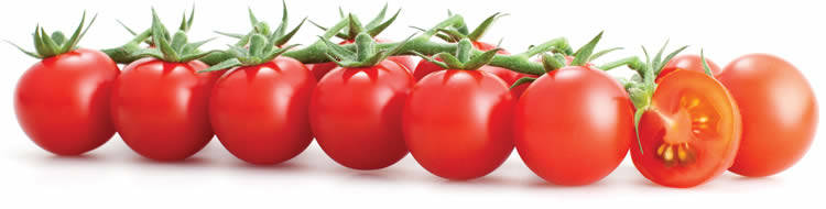 Snijd de kerstomaten in 2 en gebruik deze als garnituur samen met enkele basilicumblaadjes en een paar