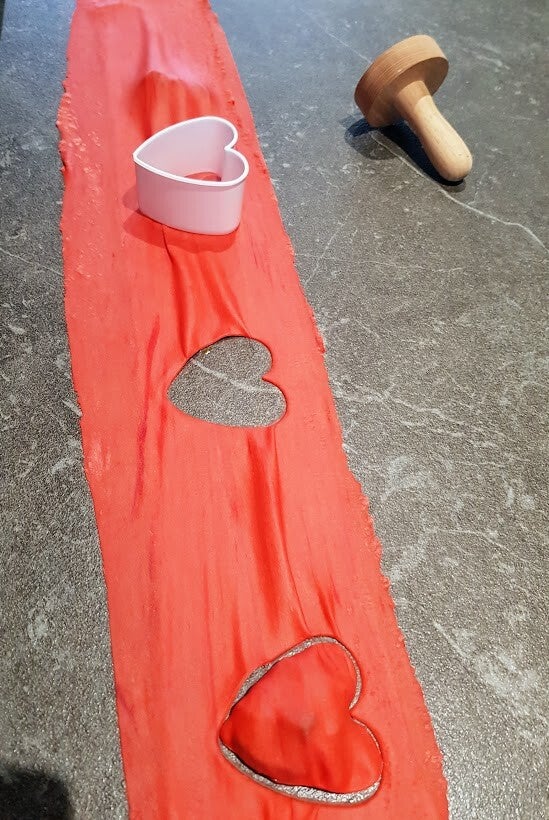 Bedek de deeglap met een tweede en neem een hartvorm om de ravioli's uit te steken.