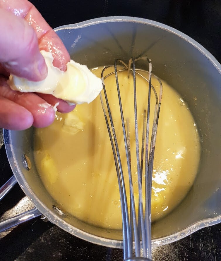 Voeg nu de resterende 50 gr boter al roerend toe zonder de saus te laten koken.
